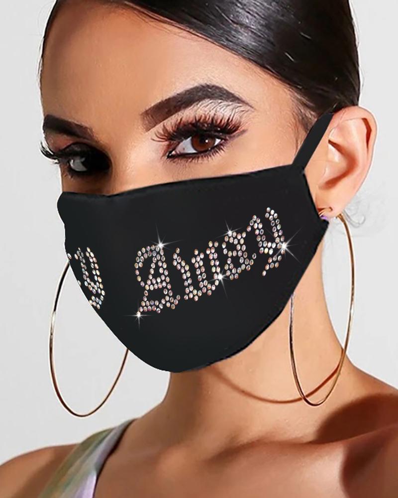 Bling Rhinestone Letter Pattern Face Mask, Style1