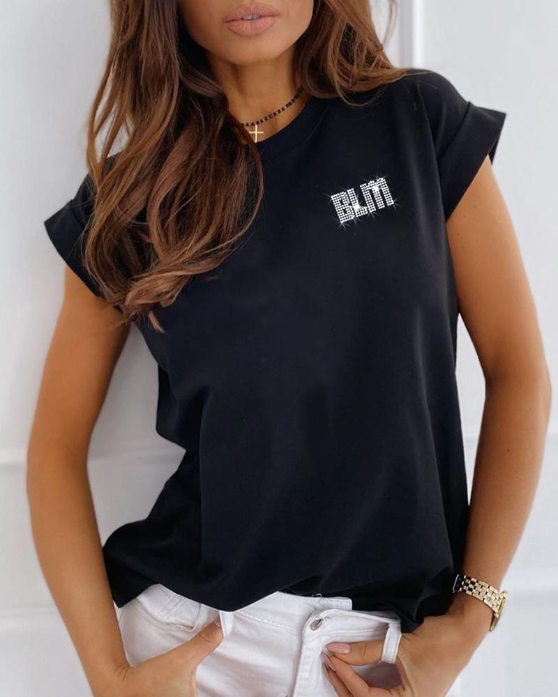 Bling Rhinestone Letter Pattern T-Shirt, Style4