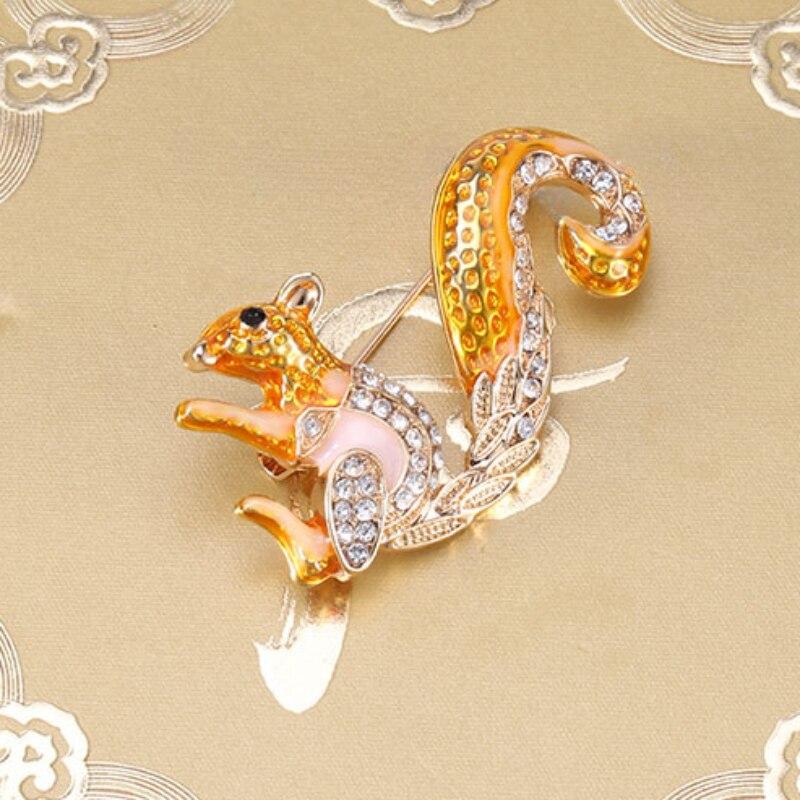 Blucome винтажные расписные броши с белкой, нежные броши со стразами, женские вечерние корсажные аксессуары для пальто, элегантная булавка золотой