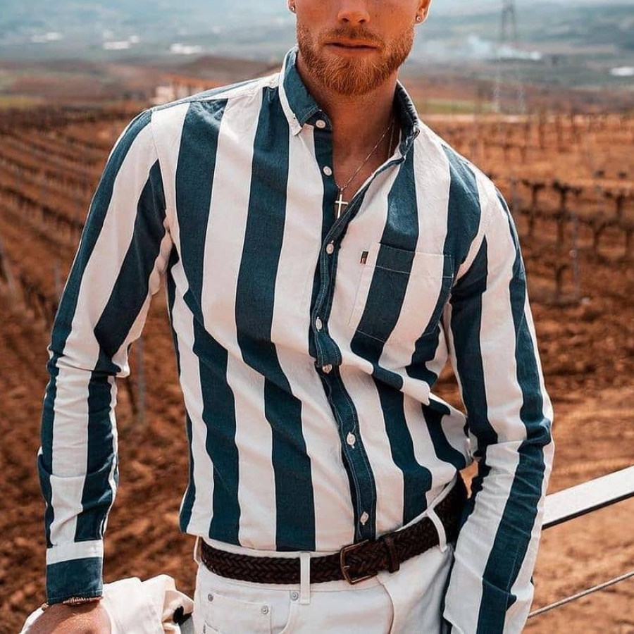 button-downs,blue striped long sleeve shirt