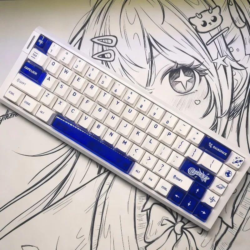 Blue White Theme Keycaps Set Customized PC Translucent 120 Keys Cherry Profile Keyboard Caps for Mechanical Keyboard Accessories