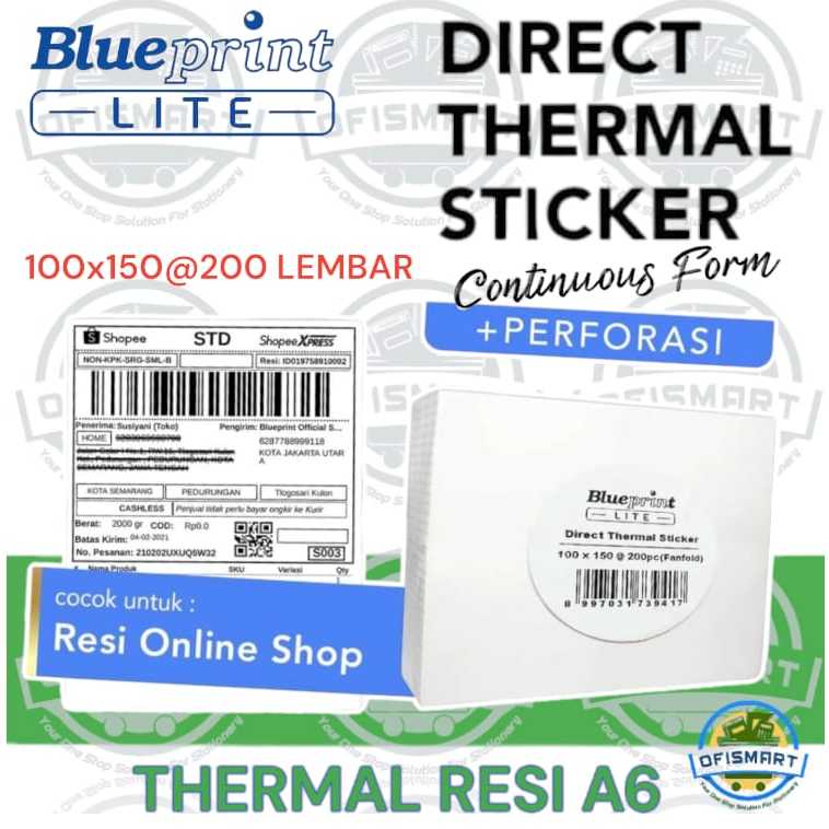 Blueprint Thermal Label 100x150mm Continuous Foam | @1Pack=200Lbr