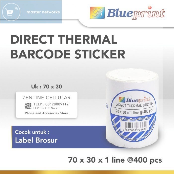 Blueprint Direct Thermal Sticker Label Stiker 70x30 mm 1 Line 400 pcs