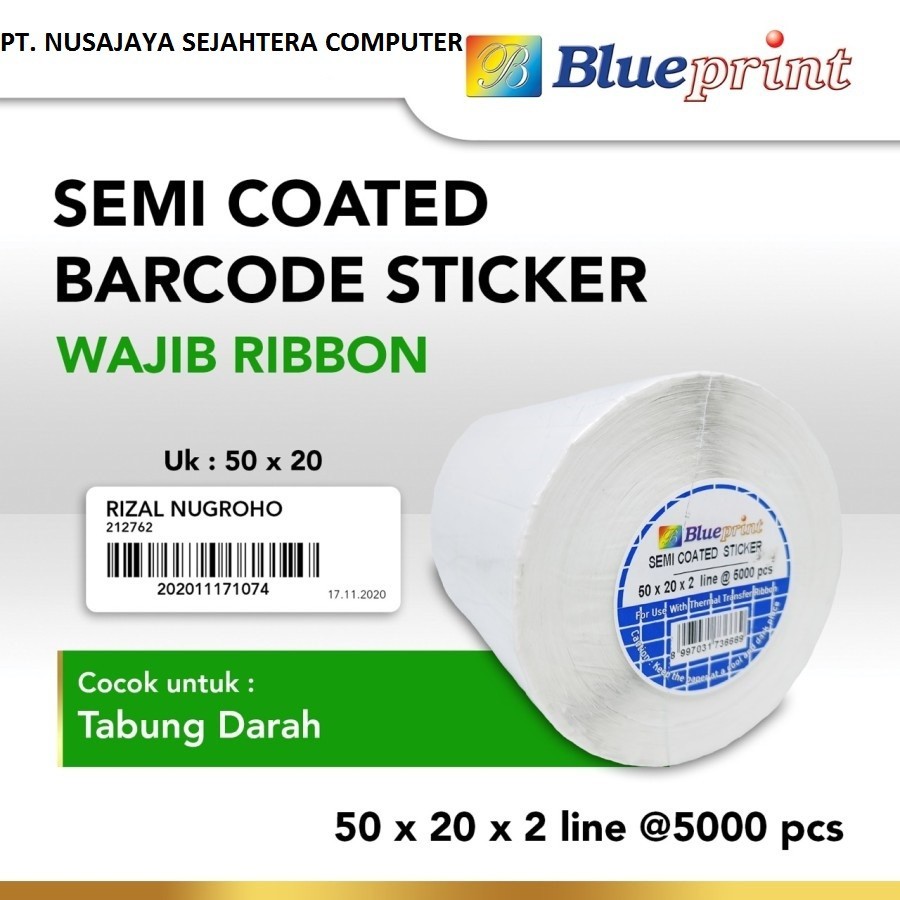 Label sticker semi coated ini harus dipakai dengan menggunakan barcode ribbon wax, wax premium dan wax/resin.