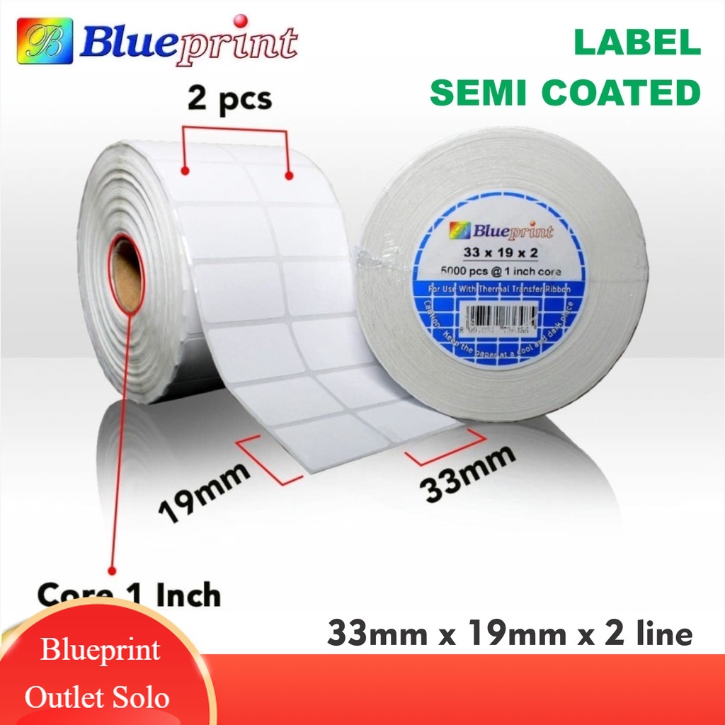 Blueprint Sticker Label 33 x 19mm 2 Line Semi Coated Label Stiker Barcode Blueprint Outlet Solo