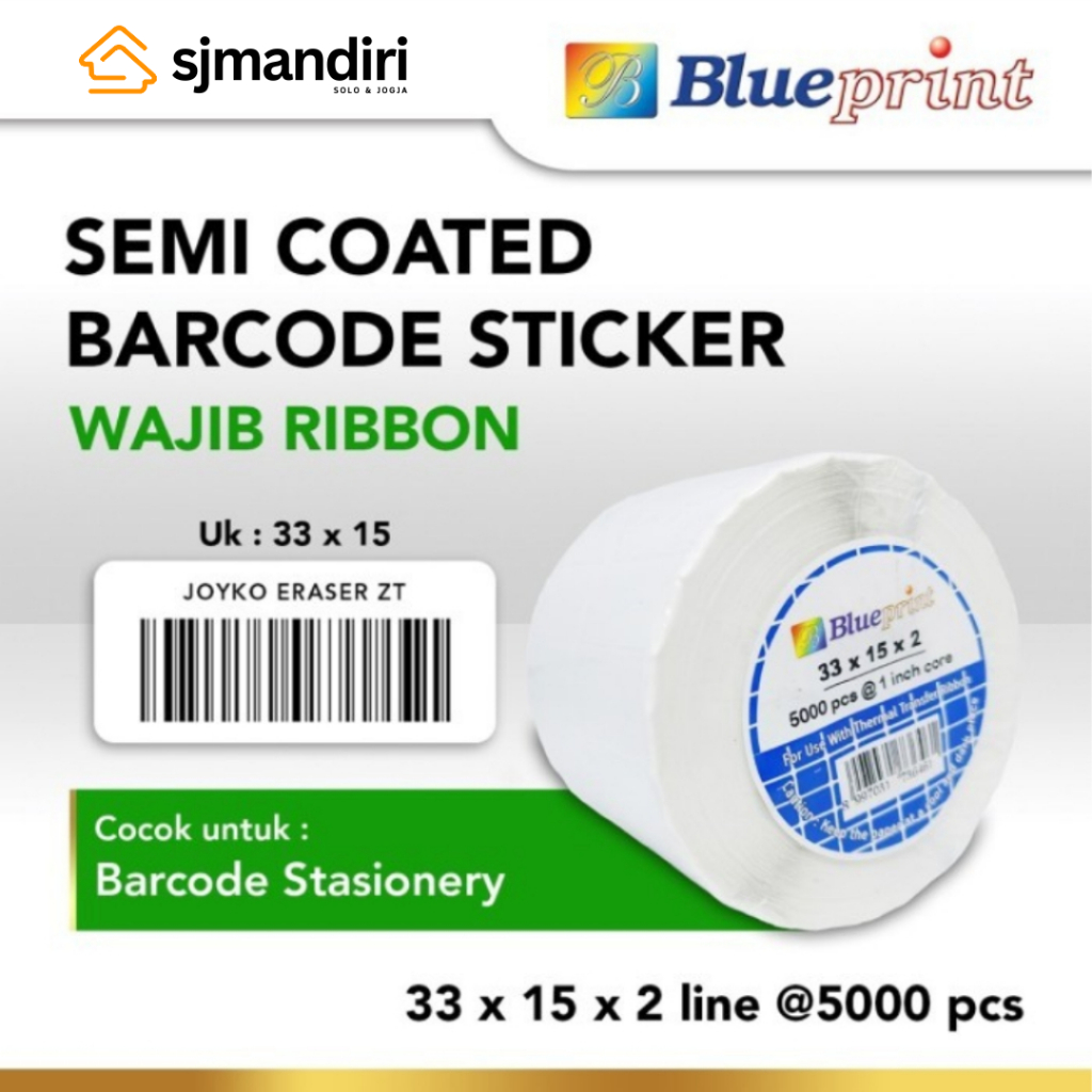 Sticker label Barcode 33x15mm 2 Line Semi Coated BLUEPRINT Core 1" isi 5000 Pcs