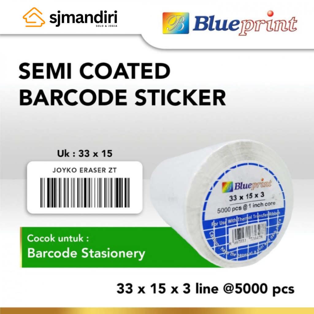 BLUEPRINT Sticker label Barcode 33x15mm 3 Line Semi Coated Core 1" isi 5000 Pcs