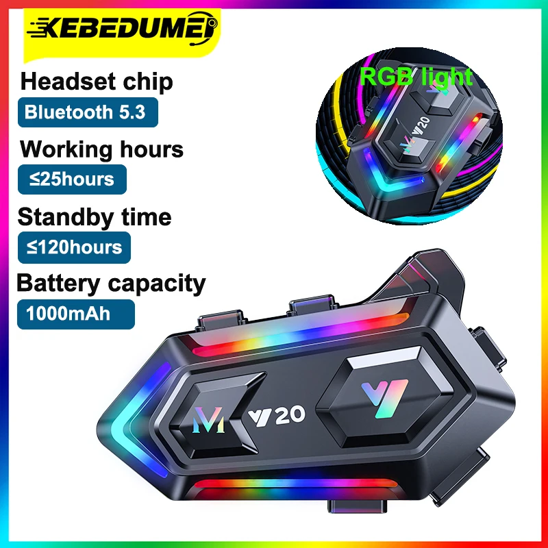 Bluetooth-гарнитура Kebidumei Y20 для мотоциклетного шлема, водонепроницаемость IPX7, 1000 мАч