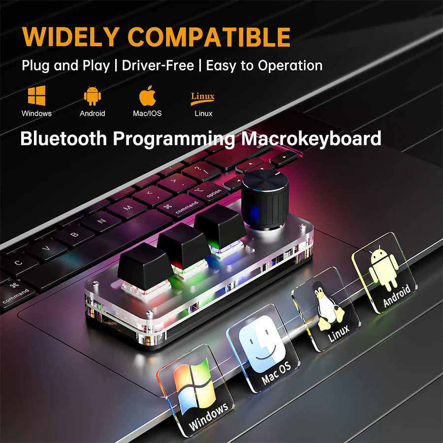 Bluetooth 2.4G Macro Mechanical Keyboard Programming Customize Keypad Mini 3 Keys 1 Knob Hotswap Macropad for Gaming Photoshop