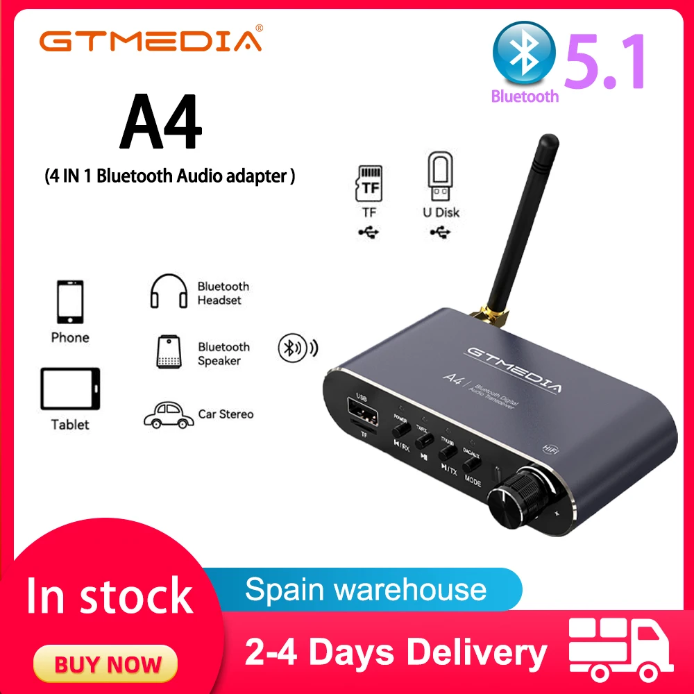 Bluetooth 5,1 аудио-ресивер GTMEDIA A4 с поддержкой USB U-Disk Play, беспроводной адаптер Aux in/out 3,5 мм, RCA R/L для автомобильного динамика