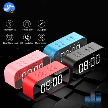 Bluetooth 5.0 Portable Speaker Column Subwoofer Music HIFI Player Sound System Box with LED Time Alarm Clock for Laptop Phone
