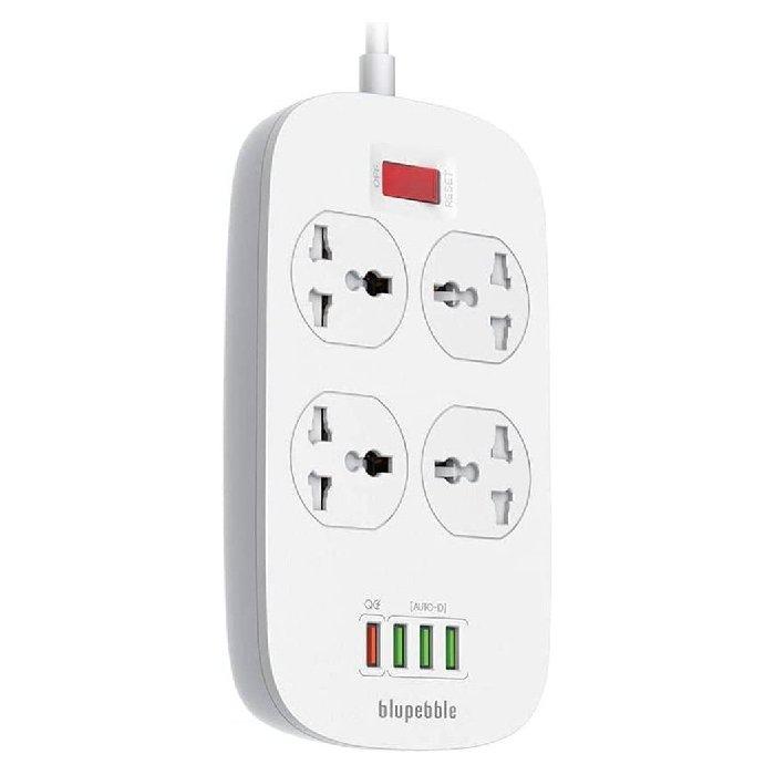 Blupebble surge protection, 4 universal socket with 3 usb port + qc3. 0, bp-ps1904p - w...
