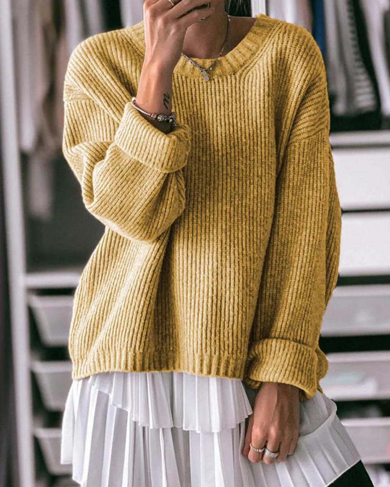 Boat Neck Ribbed Knit Sweater, Yellow