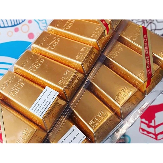Satu kemasan terdapat 5 batang coklat berbentuk emas batangan rasa coklat yg di jamin enak dan halal