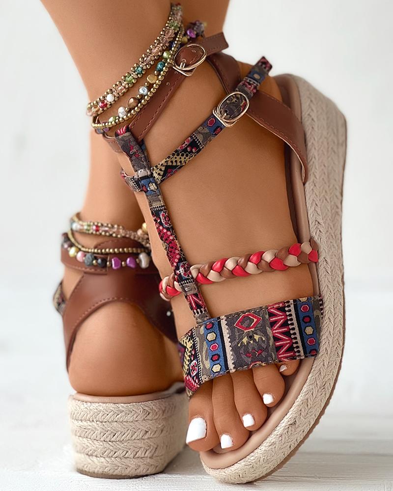 Bohemian Retro Multi Strap Wedge Sandals, Multicolor