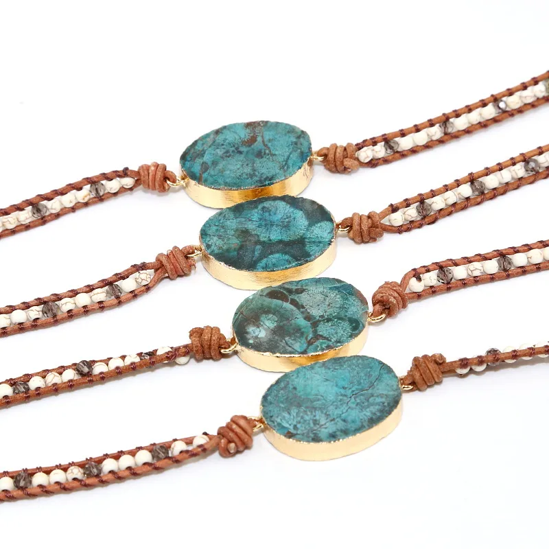 Boho 5X кожаный браслет с бусинами, Большой браслет OceanStone, богемный браслет, подарок на день Святого Валентина