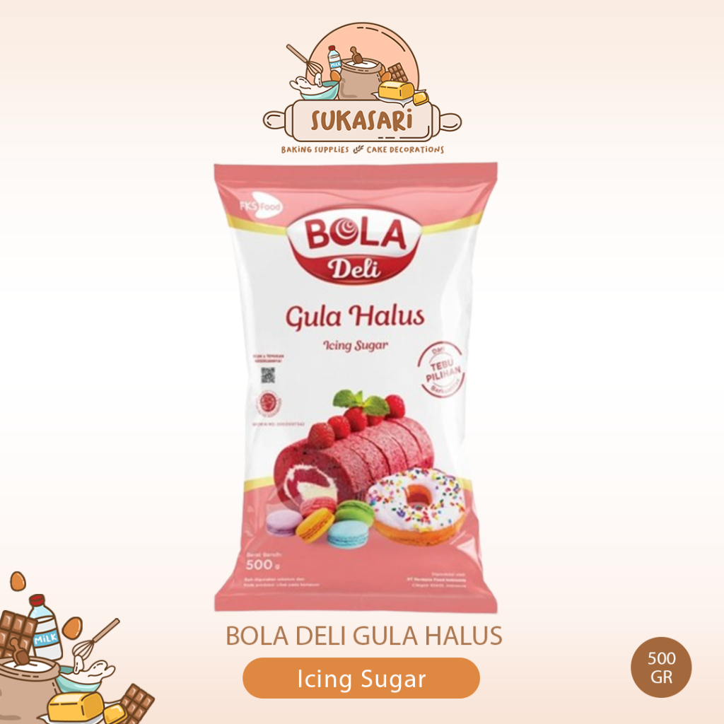 BOLA Deli Gula Halus terbuat dari Tebu pilihan berkualitas yang diproduksi dan dikemas dengan mesin modern, higienis, dan kualitas terjamin. Sangat cocok sebagai campuran pembuatan kue dan sebagai hiasan atau royal icing.