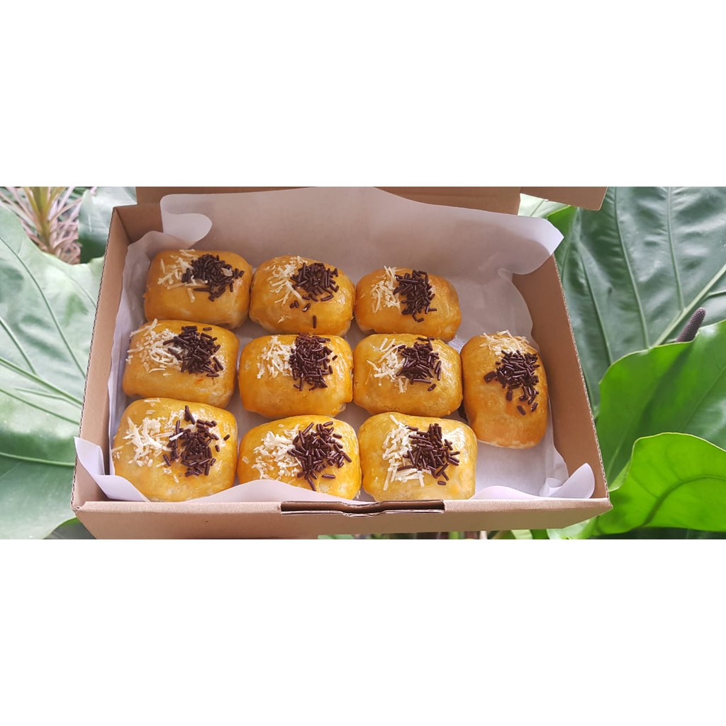 Bolennya DINIkmati dengan isi perboxnya adalah 10 pcs Bolen Varian BONIS isi Pisang + Coklat + Keju