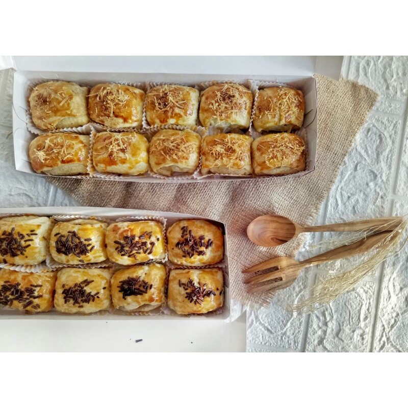 Ukuran box 30 x 10 x 5 cm dengan isi 10 pcs bolen pisang.