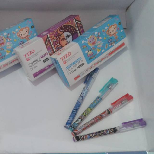 Bolp Tizo Fancy dengan Motif lucu dan fancy dengan ujung pulpen 0.5mm..warna Tinta HITAM. smoth dalam menulis juga tidak mudah BOCOR. 1pack isi 12pcs ya.