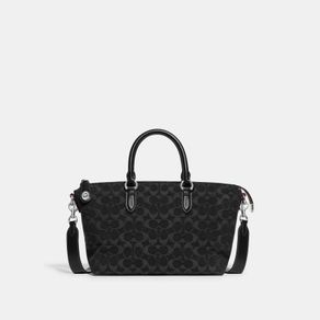 | summary: | Nuestro bolso satchel Cara, un estilo minimalista con la máxima capacidad, tiene todo lo que necesitas. Confeccionado con nuestra espectacular tela vaquera negra de firma y piel de la máxima calidad, el diseño simplificado tiene una cremallera alargada que se abre bastante para facilitar el acceso al espacioso interior, bolsillos organizadores multifunción y un práctico bolsillo con cremallera exterior para los objetos básicos. Con asas desplegables y una correa desmontable para llevarlo cruzado, viene acabado con nuestro icónico cierre de giro, etiqueta colgante y charm en forma de C. Es un bolso que funciona (y juega) tan duro como tú. |
