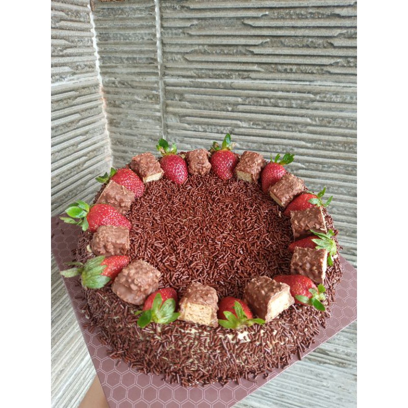 Bolu coklat dilapisi cream mocca homemade, dan ditaburi meses ceres.