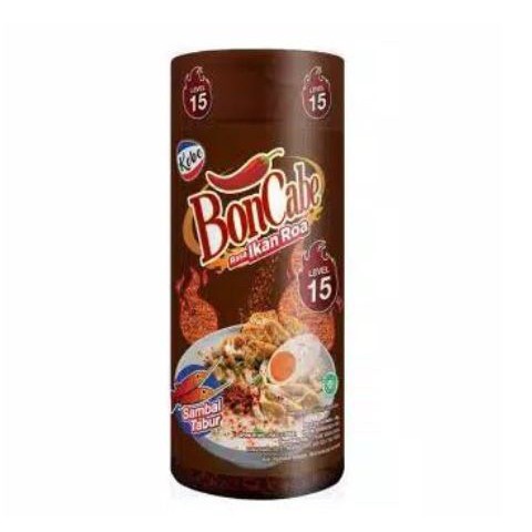 Bon Cabe Sambal tabur dengan perpaduan rasa cabai dan ikan roai. Brand Kobe kemasan Botol isi bersih 40 gr.