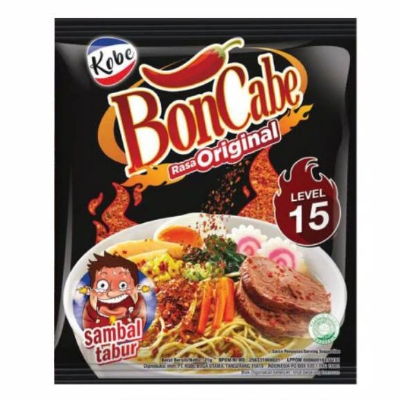 Bon Cabe Original level 15 kemasan sachet renceng, Pedas maksimal karena terbuat dari cabe kering asli isi 7 gr.
