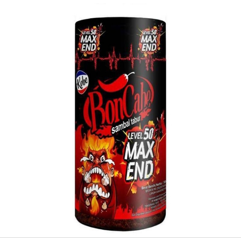 BonCabe Level 50 Max End memiliki rasa rasa pedas yang juga maksimal seperti namanya. Cocok dinikmati bagi Anda pecinta rasa pedas. BonCabe ini memiliki rasa pedas yang konsisten meski digunakan hanya dalam jumlah sedikit. BonCabe dibuat dari cabai pilihan berkualitas dengan bumbu spesial, sehingga Anda tetap dapat menikmati sensasi rasa pedas dengan nikmat.