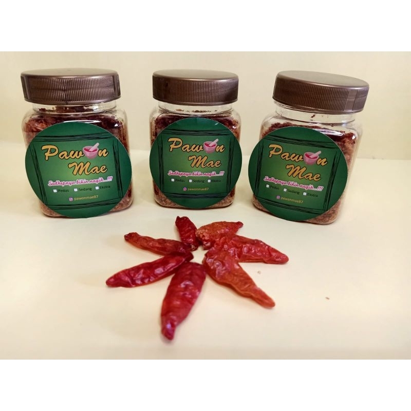 Boncabe dari "PawonMae" terbuat dari bahan-bahan pilihan berkualitas. Cocok untuk taburan aneka makanan.