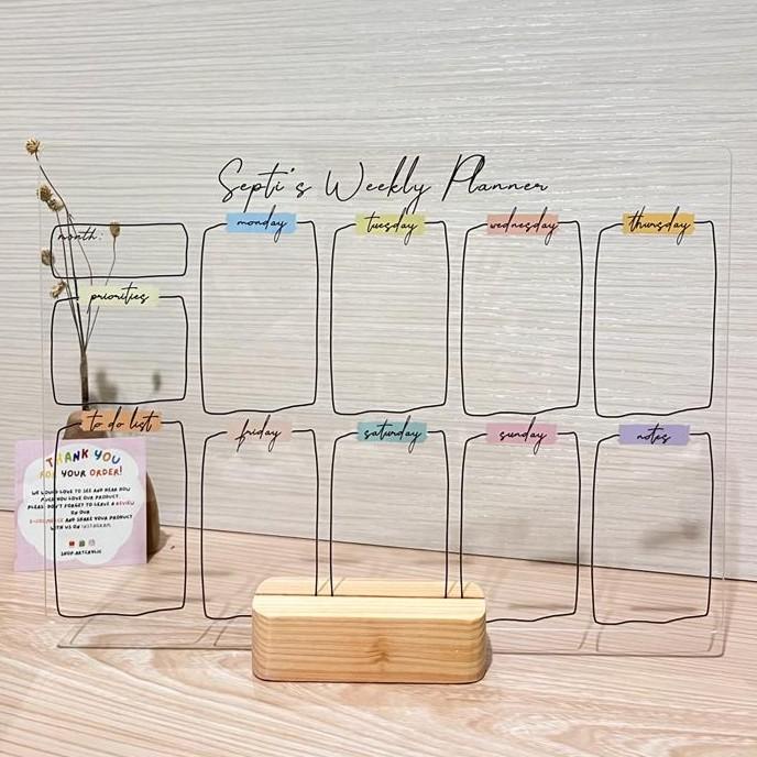 Book (Free Custom Nama) Custom Acrylic Weekly Planner Design C