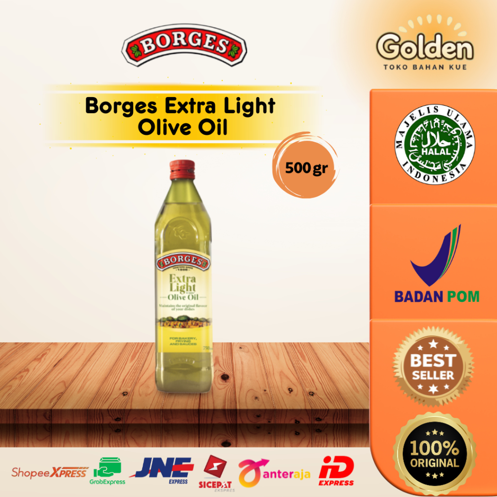 Borges Extra Light Olive Oil adalah minyak zaitun jenis refined (luluh/murni) yang dicampur dengan sedikit extra virgin olive oil, sehingga memiliki rasa sangat netral dan aroma lembut. Minyak ini berasal dari Spanyol dan dibuat oleh perusahaan Borges, yang telah beroperasi sejak 1896 dan dikenal sebagai produsen produk minyak zaitun dan makanan olahan kelas dunia