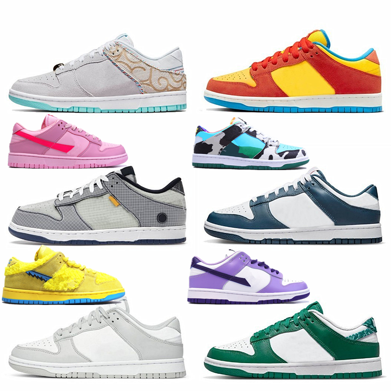 Designers Lows Casual Running Shoes Safari Mix Paisley UNC Blue Raspberry Women Men Barber Camo Union Low Sports Bart Simpson Green Cherry Sun Club Trainer Sneakers, 15