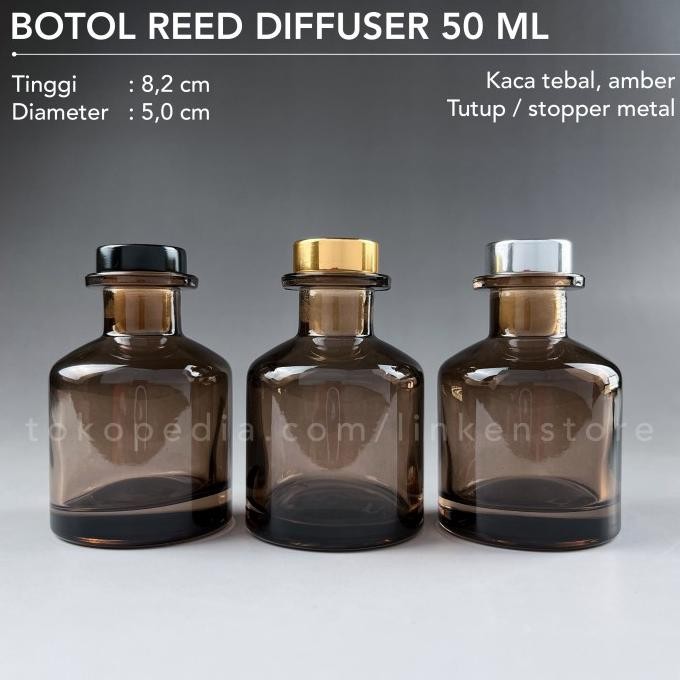 Botol Reed Diffuser 50ml - Kaca Tebal Hitam Transparan Amber - Vas Pot KTS
