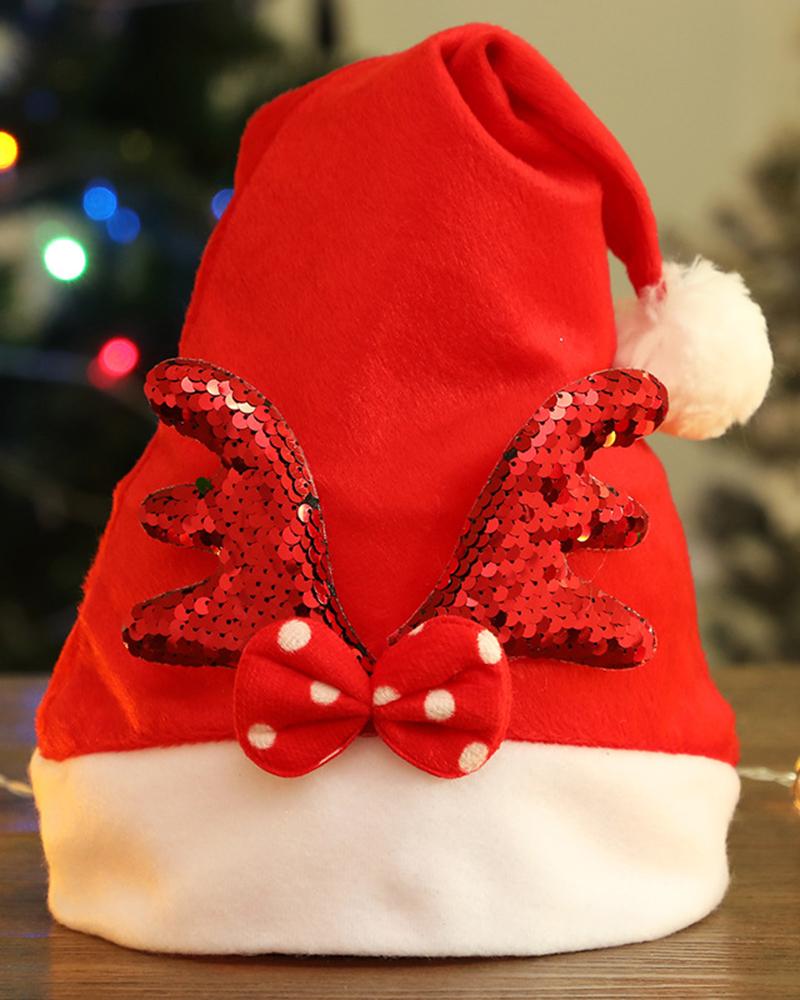 Bowknot Antler Pattern Pom Pom Christmas Hat, Red