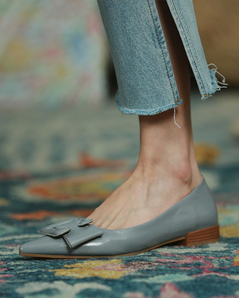 Bowknot Front Pointed Toe Slip On Shoes, Apricot