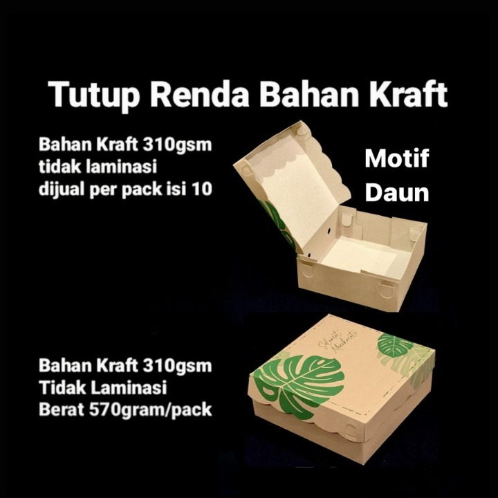 Box Kraft Model Tutup Renda Motif Daun Dus Snack 18x18x7cm
