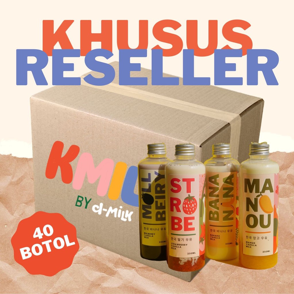 Box berisikan 40 botol produk K-Milk dengan box karton wrapping. Pemesanan akan di proses khusus untuk Re-seller K-Milk yang sudah mendaftar melalui @kmilkid, pesanan tidak akan di proses/dibatalakn jika bukan Re-seller K-Milk.