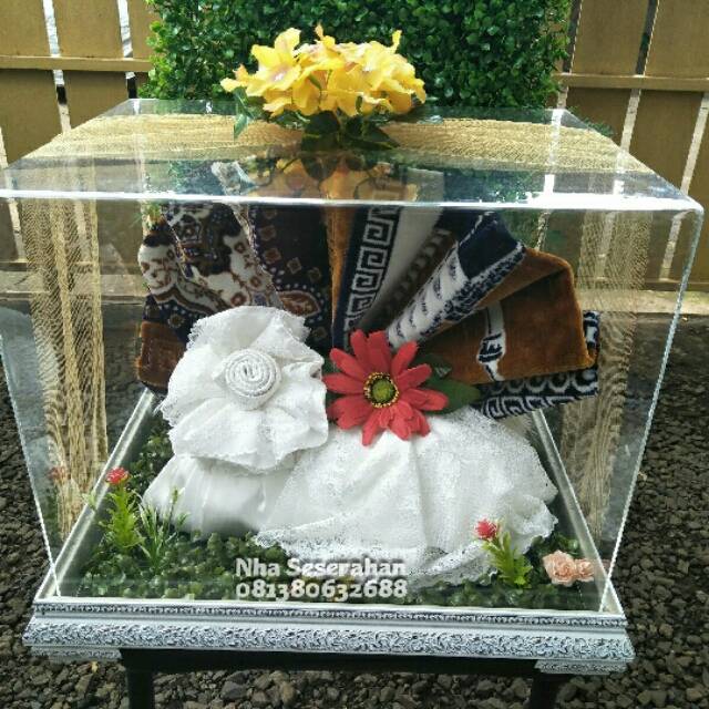 Untuk tambahan hiasan bunga, pita, kain tile di atas box ada tambahan biaya lagi.