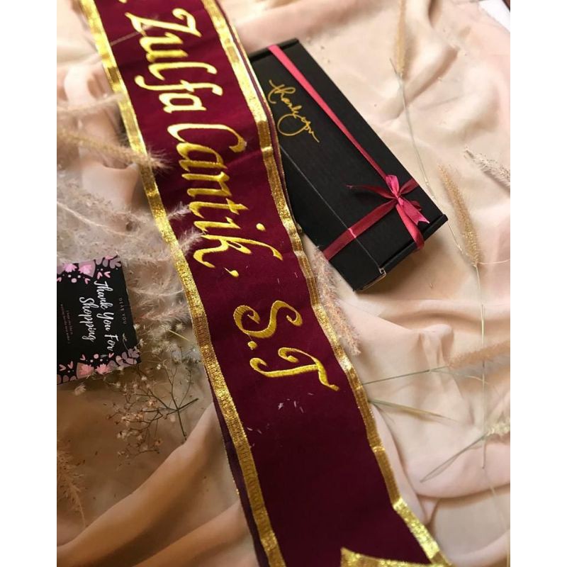 Box Slempang Bludru 1 lapis dengan tulisan full bordir ya kak