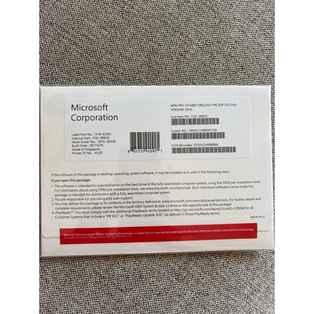 Box Win 10 Pro Original 64 Bit (Aktif Lifetime)