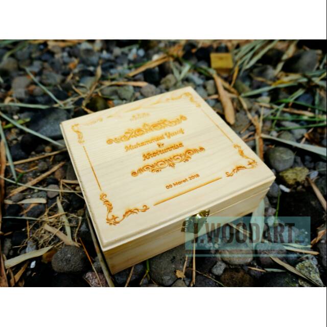 Box seserahan untuk perkawinan yang terbuat dari kayu jati Belanda, free desain dan gravir nama ,bisa custom ukuran sesuai keinginan #boxkayupinus #boxcincin #boxcincinkayu