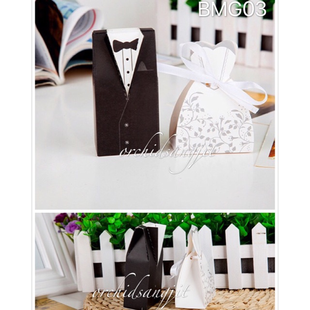 Box couple baju pengantin. Kualitas kertas grade B. Harga Rp 2.500/pcs. Ukuran Box hitam : 10x5,8x3,8cm dan ukuran box putih : 6,5x3,7x9,3cm. Harga di atas adalah harga satuan.