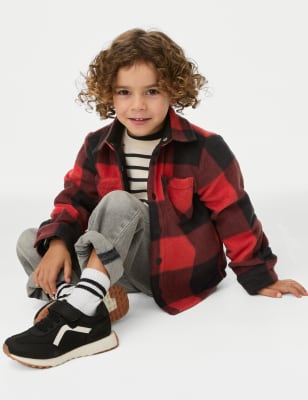 Boys M&S Collection Fleece Check Shacket (2-8 Yrs) - Red Mix, Red Mix