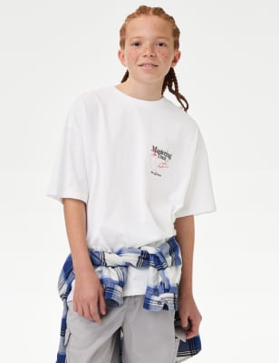 This pure cotton T-shirt is a cool choice for your little one. It's designed in a comfy oversized fit with a crew neckline and dropped shoulders. The front features a small slogan while an exaggerated graphic of a race car covers the back.