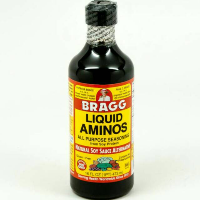 Bragg Liquid Aminos is a Vegetable Protein Seasoning from Healthy, Certified Non-GMO Soybeans from the Original Formula by Health Pioneer and Originator of Health Stores, Paul C. Bragg.