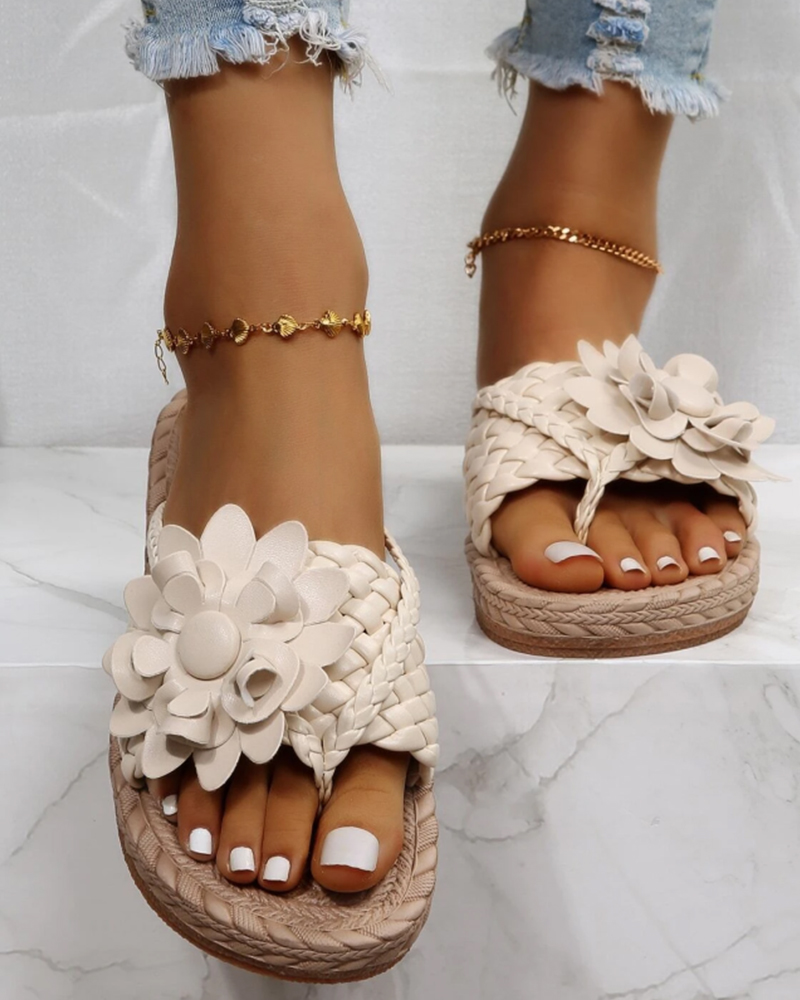 Braided Floral Pattern Toe Post Beach Flip Flops, Apricot