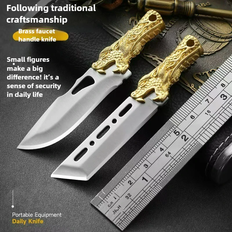 Brass Faucet Small Knife Mini Portable Straight Blade Sharp Portable Keychain