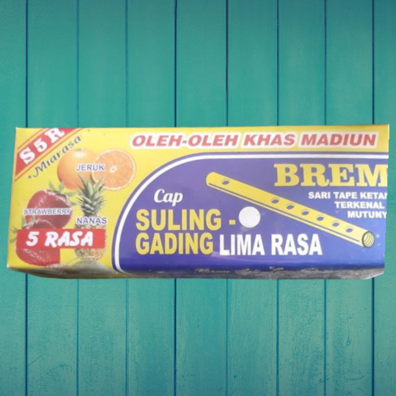 Jika yang ingin membeli brem dengan berbagai rasa buah, brem ini sangat cocok, karena dalam 1 kemasan anda mendapatkan brem dengan 5 rasa buah. Dibuat dari sari tape ketan asli dan soda kue serta rasa buah alami. Yuk diorder dan dicobain brem suling gading 5 rasa buah ini, dijamin deh bakalan ketagihan.