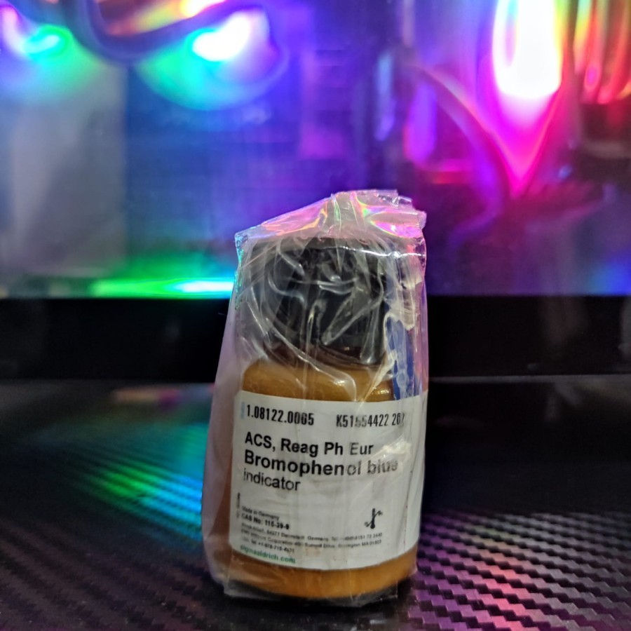 Nama Produk : BROMOPHENOL BLUE Brand : Merck, Jerman Calatog No : 108122 Cas # : 155-39-9 EC Number :204-086-2 Grade :ACS,Reag. Ph Eur Molar Mass 669.98 g/mol kemasan : repacking bottle COA DILAMPIRKAN DI KEMASAN HARAP MENANYAKAN STOCK SEBELUM ORDER!! Selain itu kami jual menjual sekitar 2.000 alat peraga pendidikan, alat laboratorium dan bahan kimia. Kami juga siap melayani pesanan alat dan bahan untuk memenuhi pengadaan alat dan bahan di laboratorium sekolah. Jangan sungkan untuk menghubungi kami. CATATAN Sabtu, Minggu, dan Hari Libur Nasional, TOKO TUTUP. Buka: Senin-Jumat Pukul 07.00-17.00 WIB ORDER MELEBIHI JAM 16.00 AKAN DIKIRIM DIHARI BERIKUTNYA